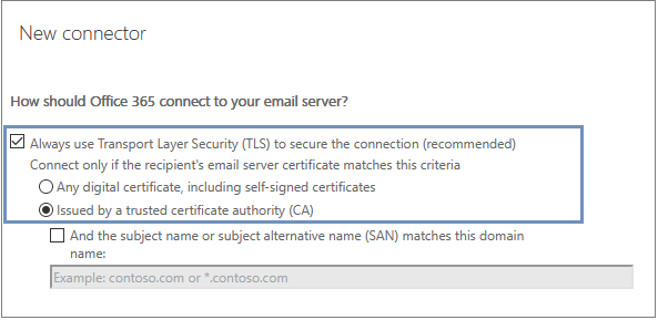 5. For 'How should Office 365 connect to your email server?' make the following selections. This is to make sure that communication between Exchange Online and Seclore EAP SaaS setup is always over TLS.
